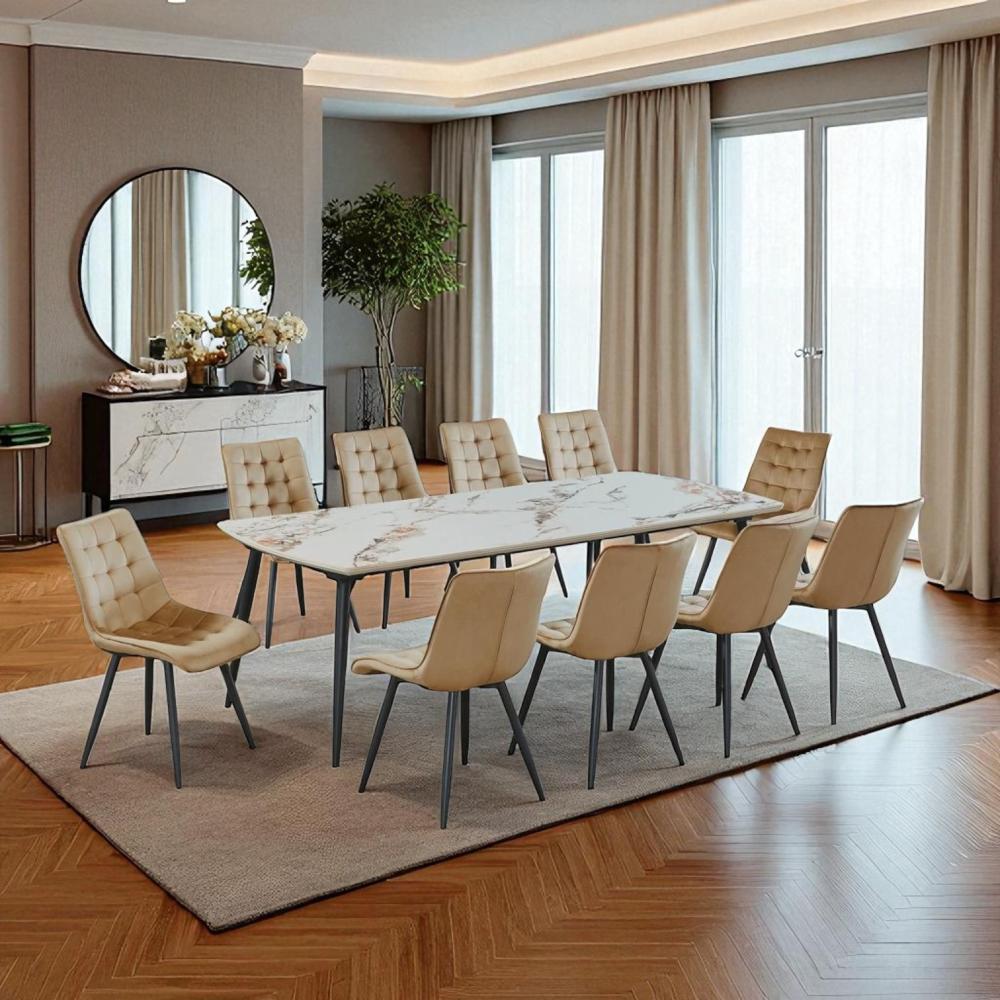 تمثل طاولة الطعام السيراميك 1+10 مقاس 100*225 قطعة أثاث استثنائية تجمع بين الأناقة والمتانة والعملية، ما يجعلها خيارًا مثاليًا للمساحات الكبيرة وغرف الطعام الفخمة.