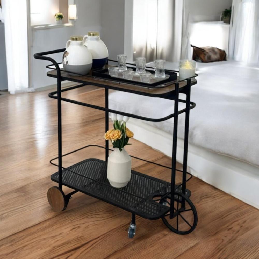 - دورين: توفر العربة دورين (رفين)، مما يوفر مساحة كافية لتقديم المشروبات، الوجبات الخفيفة، أو لعرض الديكورات المختلفة دون أن تكون كبيرة الحجم. هذا العدد من الأدوار يجعلها خفيفة بصريًا وسهلة التنظيف.
