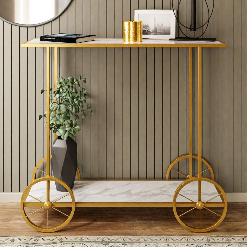 عربية تقديم فاخرة بهيكل معدني ذهبي يضفي لمسة من الفخامة والرقي على المكان،
