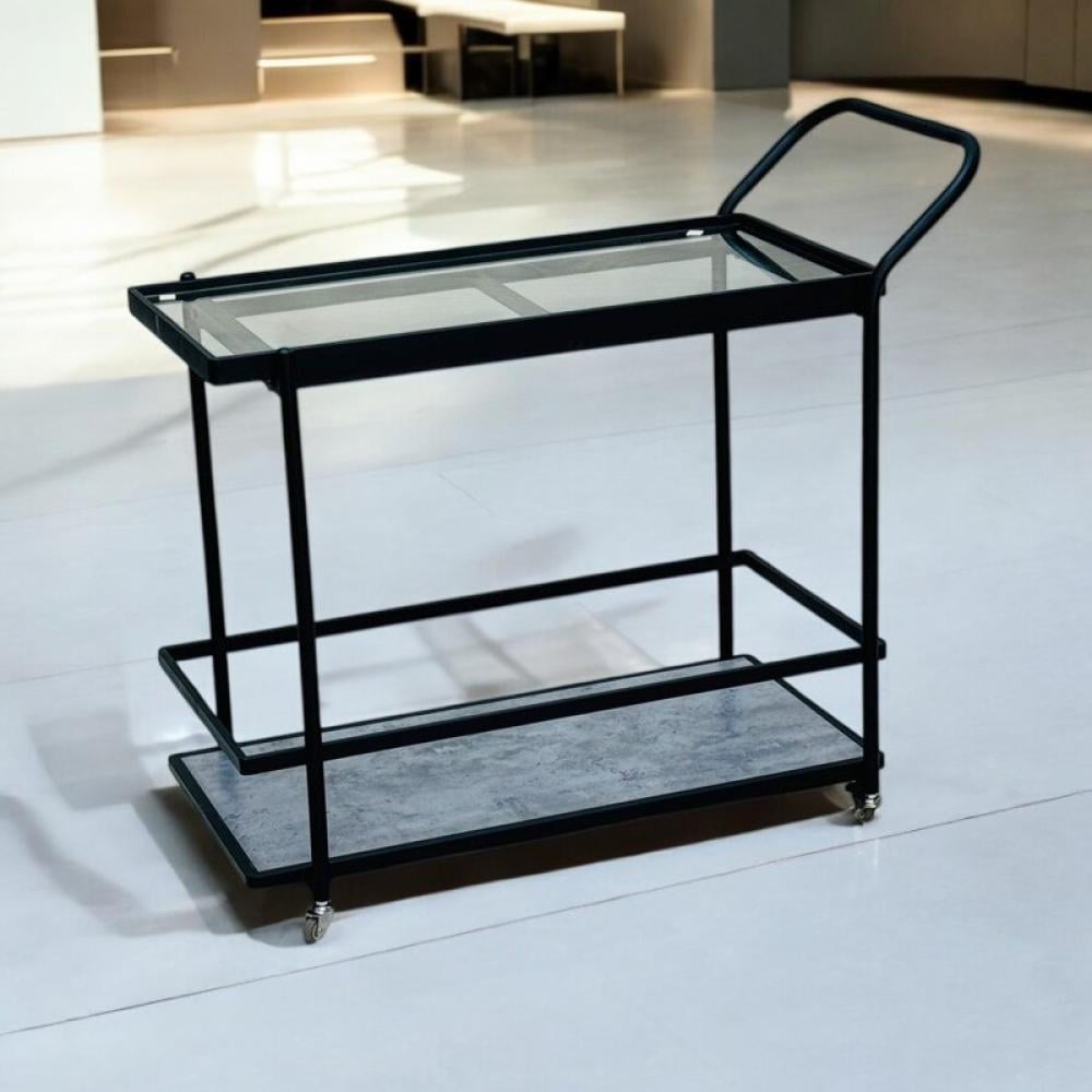 - عربة ضيافة راقية: مثالية لتقديم القهوة، الشاي، العصائر، أو المقبلات. يمكن استخدام الدور الزجاجي للعناصر الأكثر جمالًا أو التي تتطلب رؤية واضحة، بينما يوفر الدور الخشبي مساحة عملية لأطباق إضافية أو أدوات الضيافة.