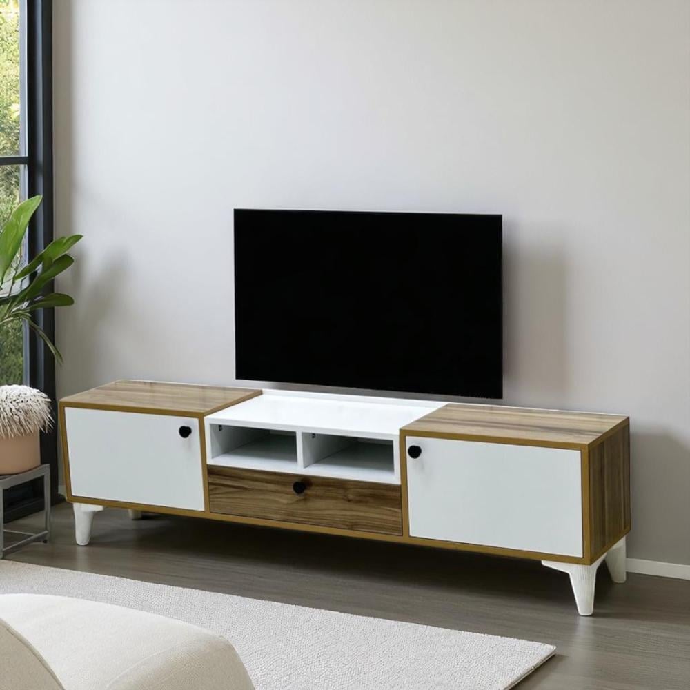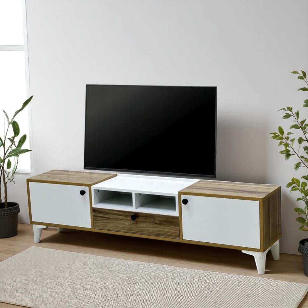 أرفف مفتوحة: تُستخدم لعرض الأجهزة الإلكترونية مثل أجهزة استقبال الصوت والصورة (الريسفر)، مشغلات الوسائط، أو وحدات التحكم بالألعاب، مع توفير تهوية جيدة لها.