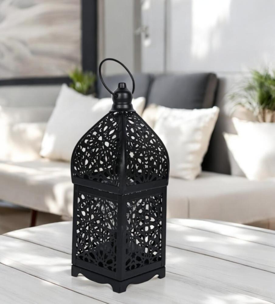 أنشري أجواء ساحرة في أرجاء منزلك بالحصول على هذا الفانوس الراقي، مصمم بتفاصيل مفرغة ساحرة ومصنوع من الحديد المتين، بحلقة لسهولة تعليقه، شكله جذاب ويعكس فخامة ذوقك.