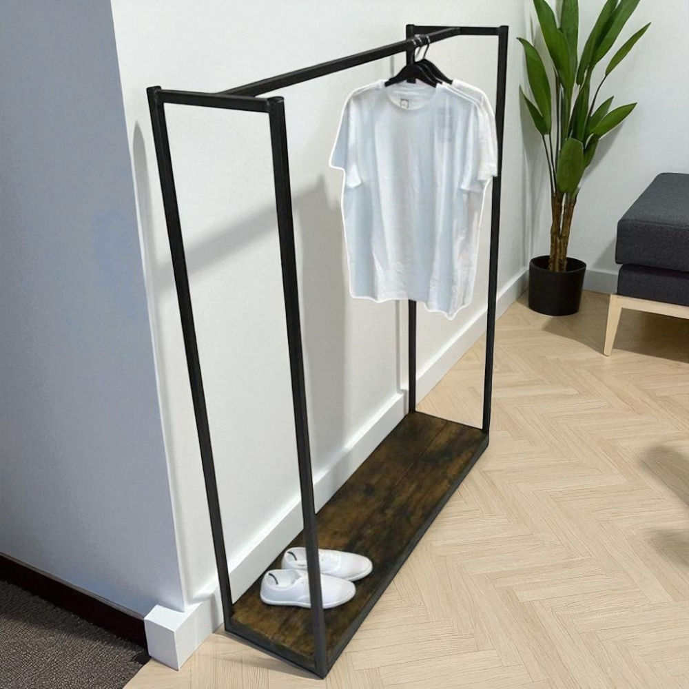 معلاق أنيق باللون الأسود العصري، مصنوع من خامة متينة وعملية ليمنحك تنظيم مثالي للملابس. يتميز بتصميم بسيط وعملي يناسب مختلف الديكورات سواء في غرف النوم أو المداخل.