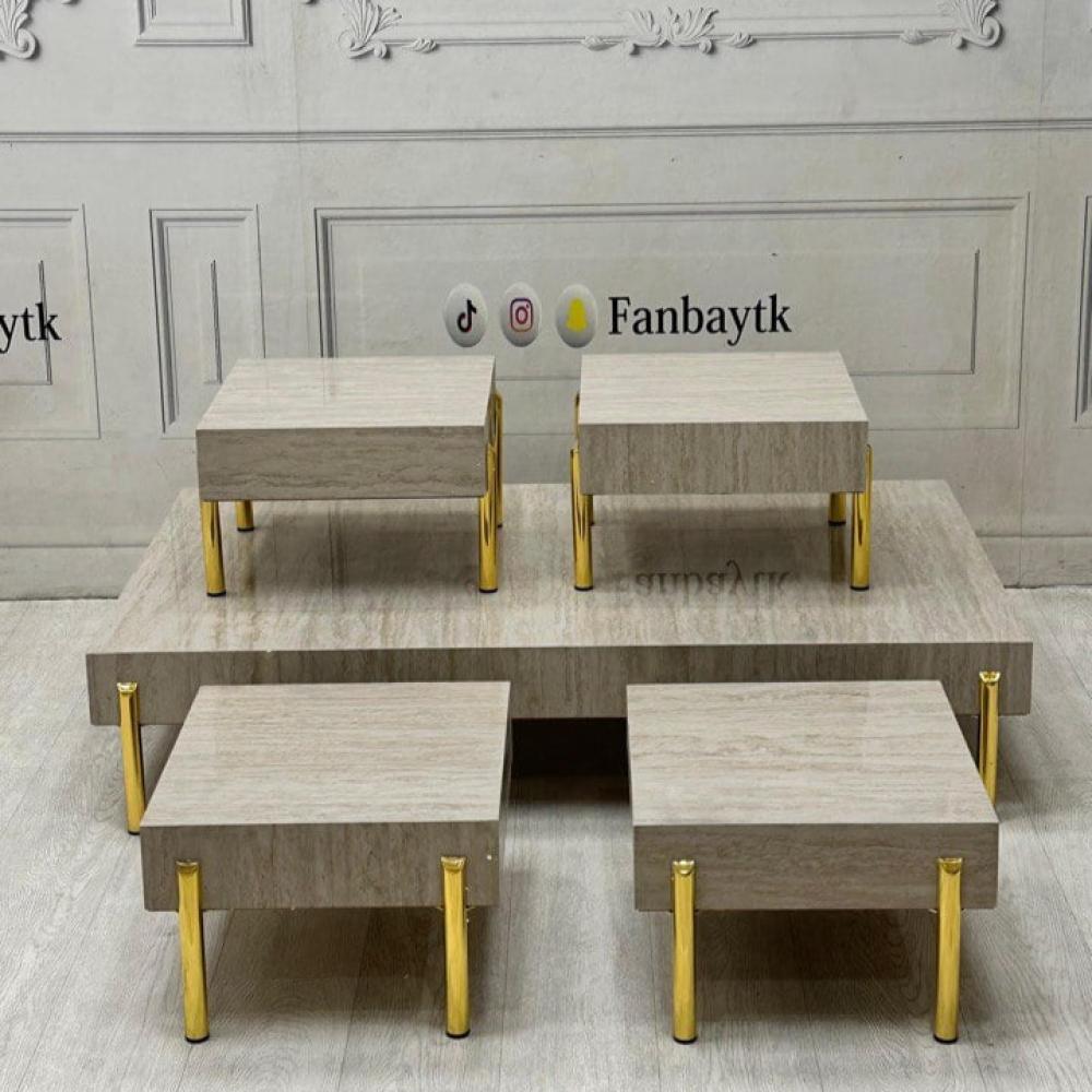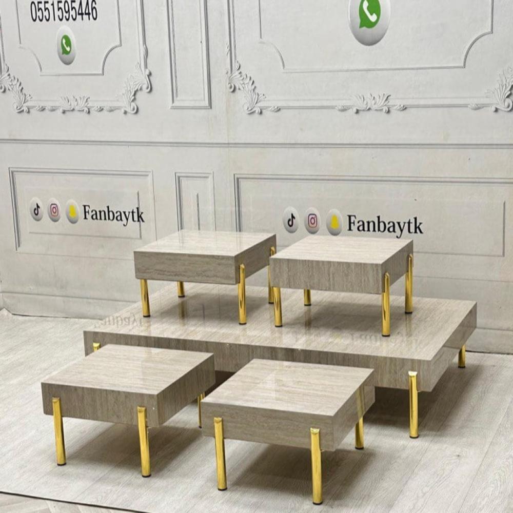 طقم طاولات ضيافة ارضي خشبي خمس قطع