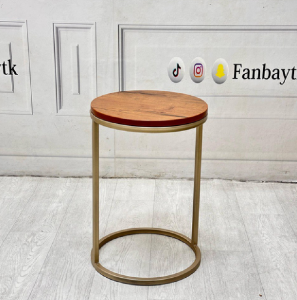3. طاولة خدمة خشب دائرية حديد ذهبي وسطح بني