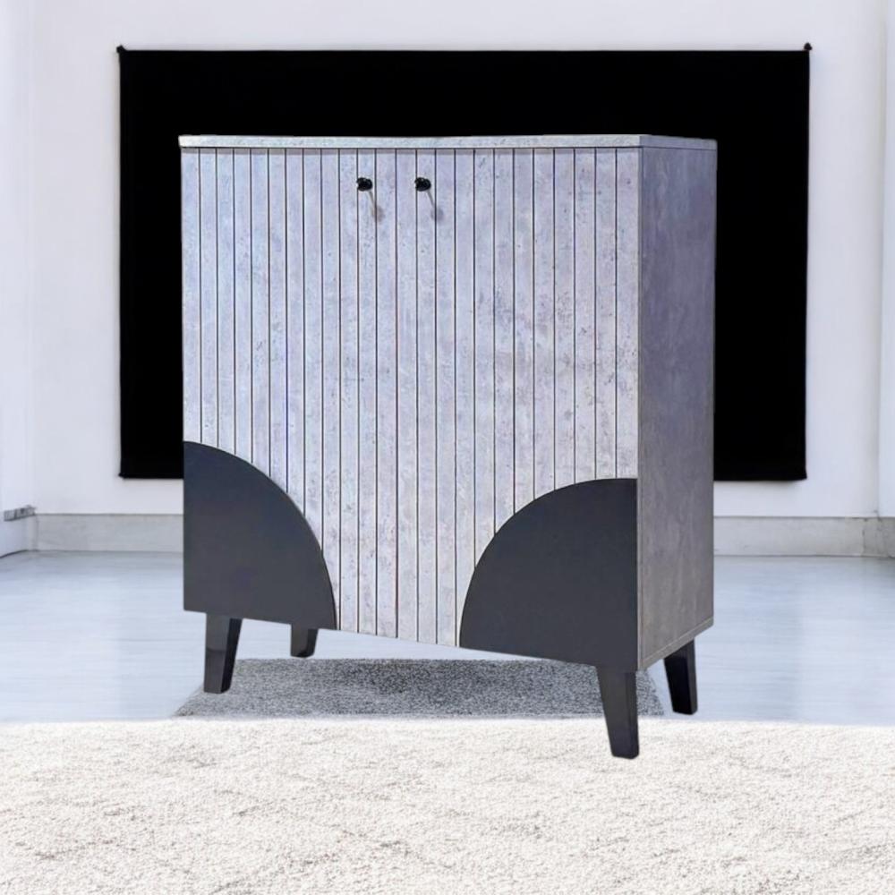 يظهر في الصورة دولاب أحذية عصري بتصميم أنيق وعملية. يتميز الدولاب بألوان جذابة وأبعاد مناسبة لتخزين الأحذية بشكل منظم ومرتب.