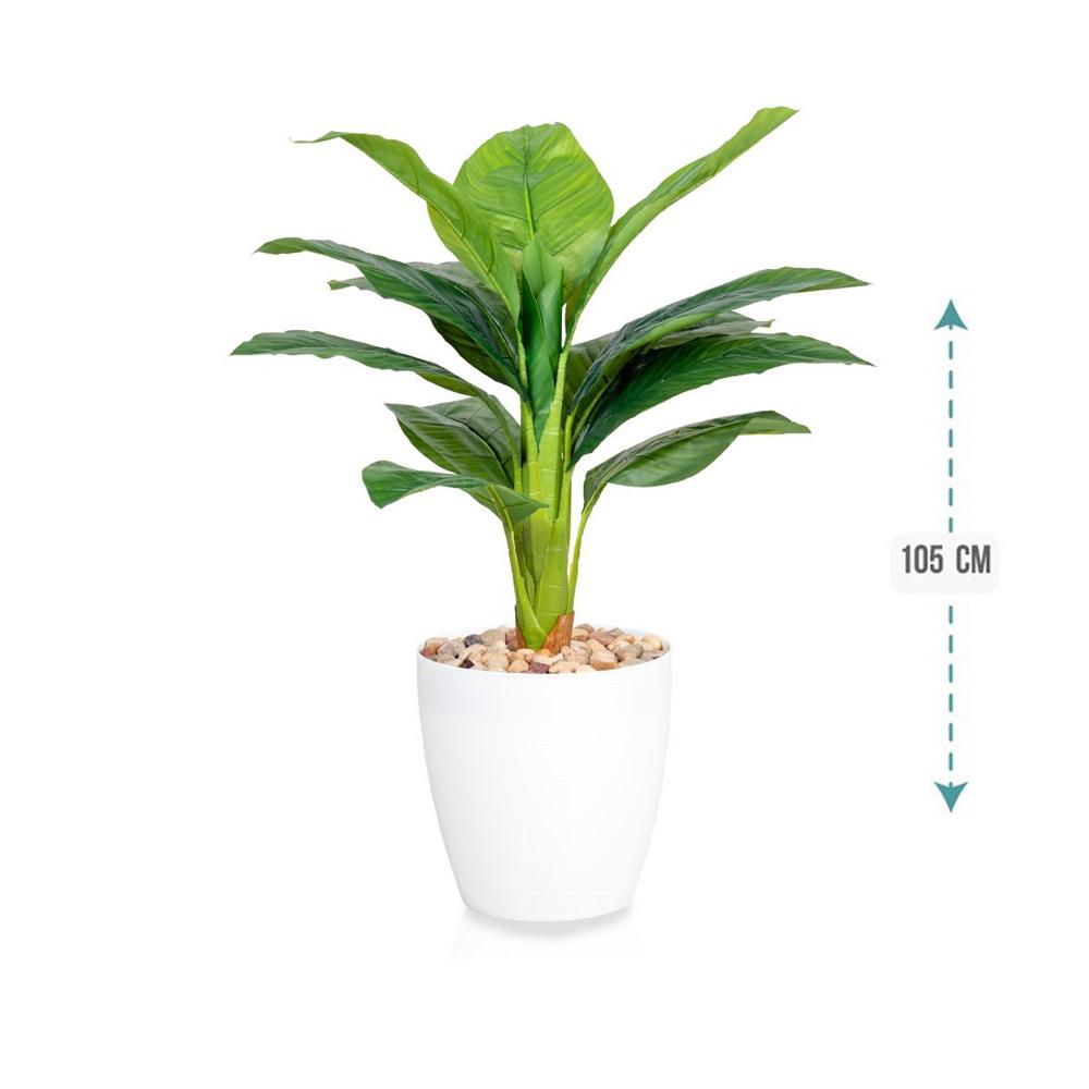 تعرّف على لمسة من الاستوائية في منزلك مع شجر الموز الصناعي الصغير! بارتفاع 105 سم، يأتي هذا النبات بديكور أوراق الموز الخضراء الجذابة، ويأتي مع حوض بلاستيك أنيق يتناغم مع أي ديكور. مثالي لتجديد أجواء الغرف وإضافة لمسة من الحيوية والطبيعة دون عناء الصيانة.