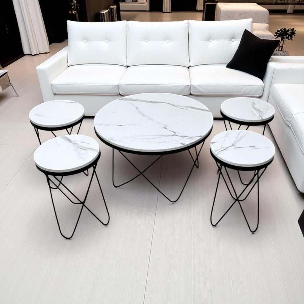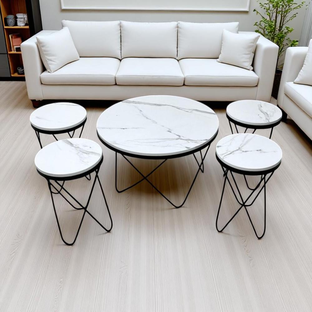 طقم طاولات 1+4 بسطح خشب لون أبيض شبيه الرخام