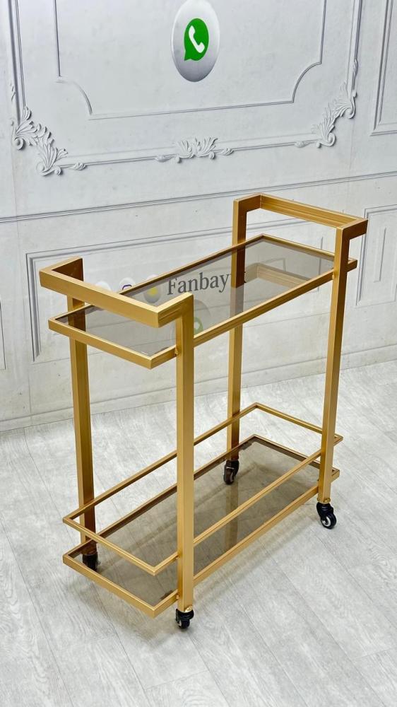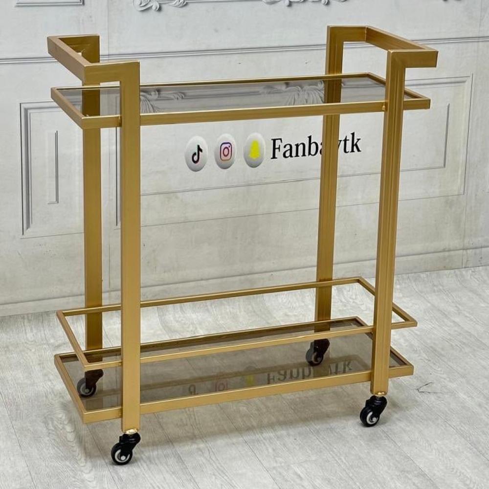 بقياسات 90 سم طولًا، 85 سم ارتفاعًا، و35 سم عرضًا، توفر هذه العربة مساحة تخزين وعرض مناسبة على دوريها، مما يجعلها مثالية للمناسبات الخاصة أو للاستخدام اليومي في المنزل. تصميمها العصري ومزيج الألوان الذهبية والعسلية يجعلها قطعة أثاث تضفي لمسة من الرقي والفخامة على أي مكان توضع فيه.