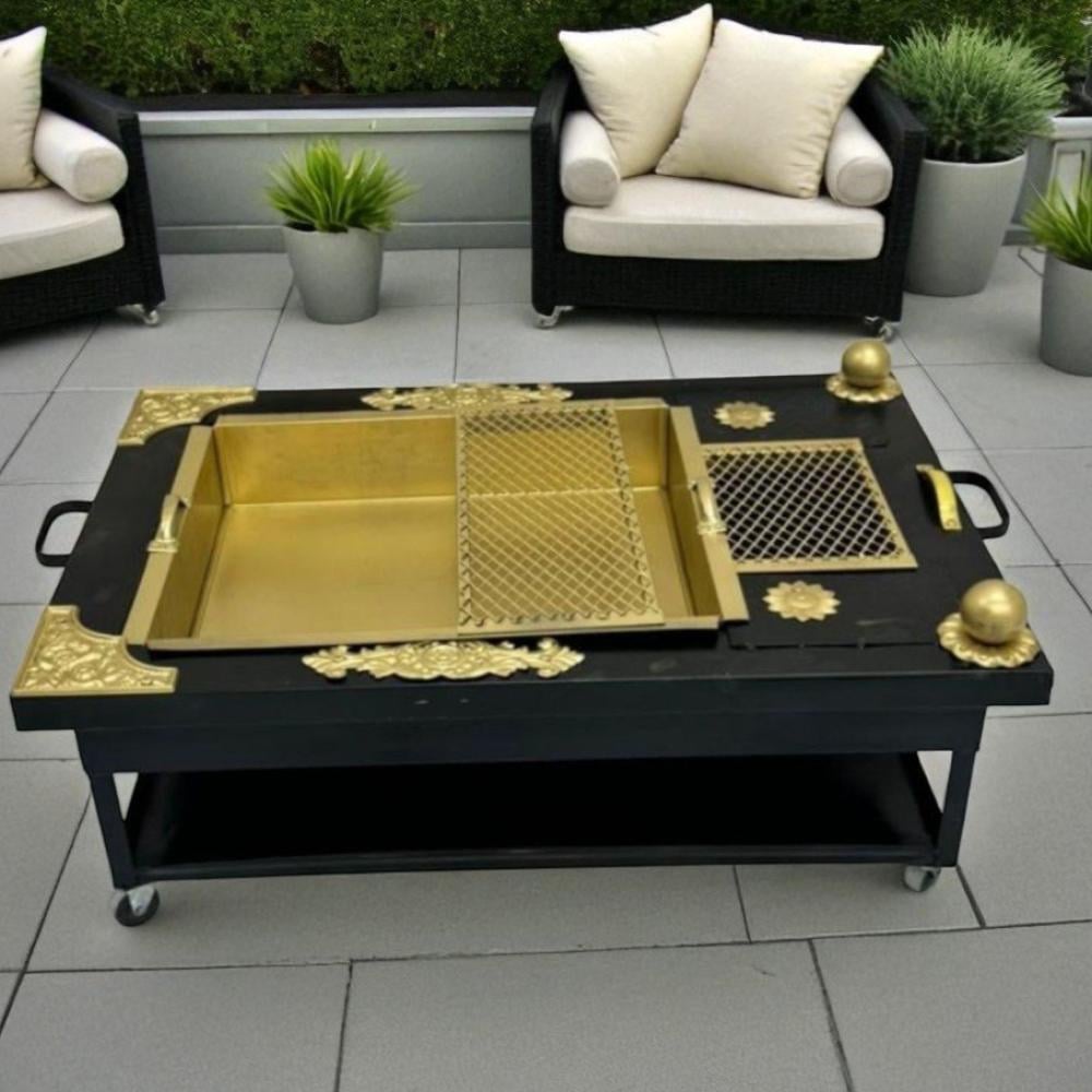 تصميمه عصري وفاخر يضيف لمسة ديكور مميزة لأي مكان داخلي أو خارجي. صُنع بعناية ليكون عملي وسهل الاستخدام، مع هيكل قوي يضمن ثباته واستقراره أثناء وضع الحطب وتشغيل النار.