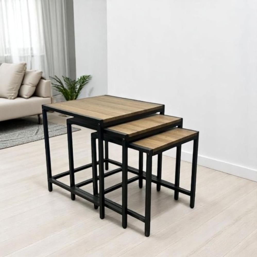 - الشكل: مجموعة تتكون من ثلاث طاولات مستطيلة بأحجام مختلفة، مما يوفر مرونة في الاستخدام.
