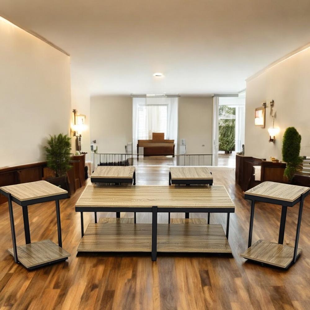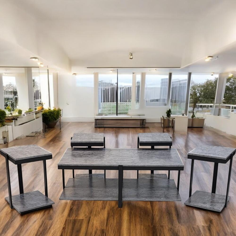 هذا الطقم الأنيق والمصمم خصيصًا لغرف المعيشة يتكون من طاولة قهوة رئيسية وأربع طاولات جانبية صغيرة، وهو مثالي لإضفاء لمسة من الأناقة والحداثة على غرفة المعيشة الخاصة بك.