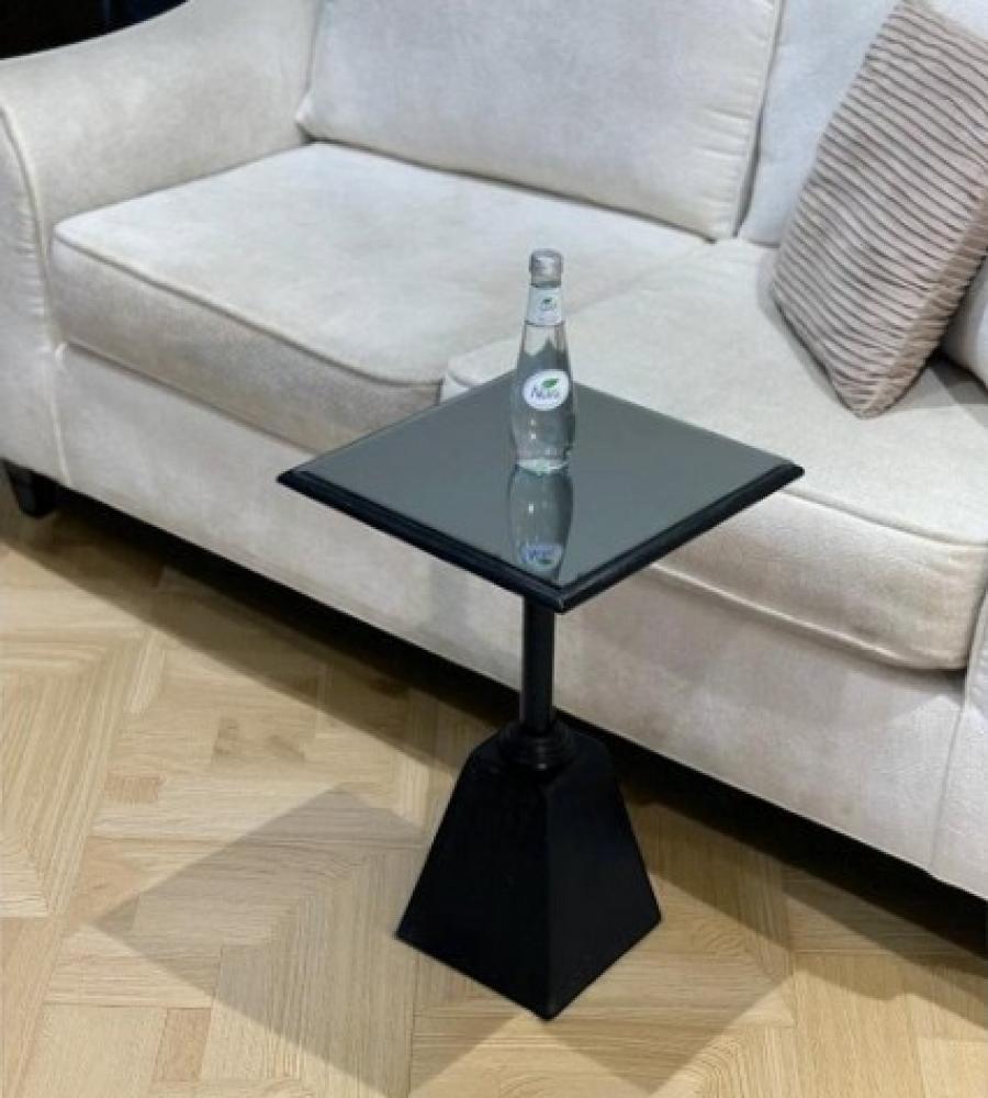 طاولة خدمة خشب أسود سطح زجاج مرايا