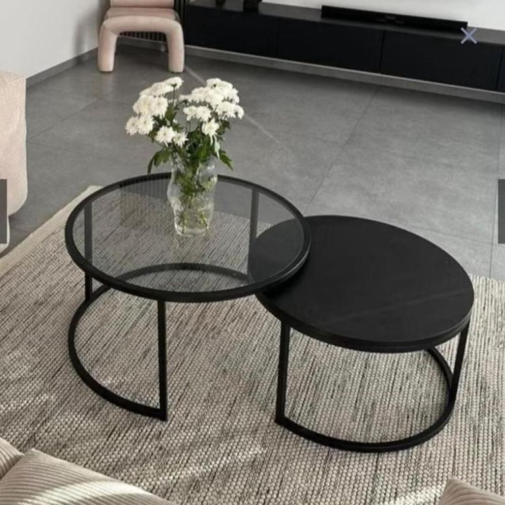 - الإطار: إطار الطاولتين مصنوع من المعدن الأسود، مما يوفر القوة والدعم ويضفي لمسة من الحداثة.