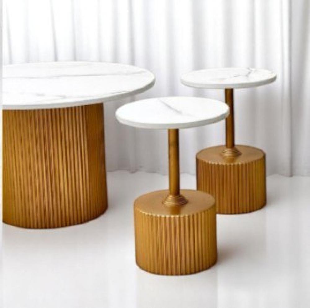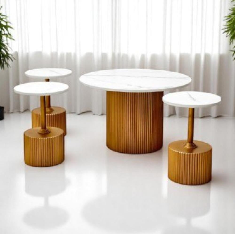 الإطار: يتميز الإطار بتصميم أسطواني مموج باللون الذهبي، مما يعطي الطاولة لمسة من الرقي واللمعان. الأرجل الأسطوانية توفر استقرارًا قويًا للطاولة.