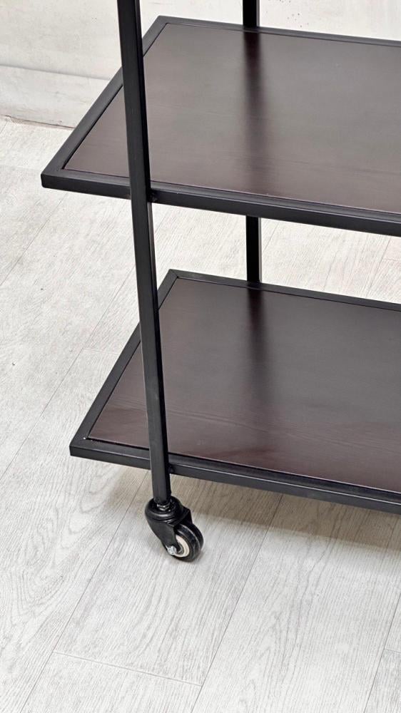 تتميز هذه العربة بتصميمها الأنيق والعصري، حيث تجمع بين لمسة الدفء الطبيعي للخشب وقوة المعدن. إنها قطعة أثاث متعددة الاستخدامات يمكن استخدامها في العديد من الأماكن داخل المنزل.