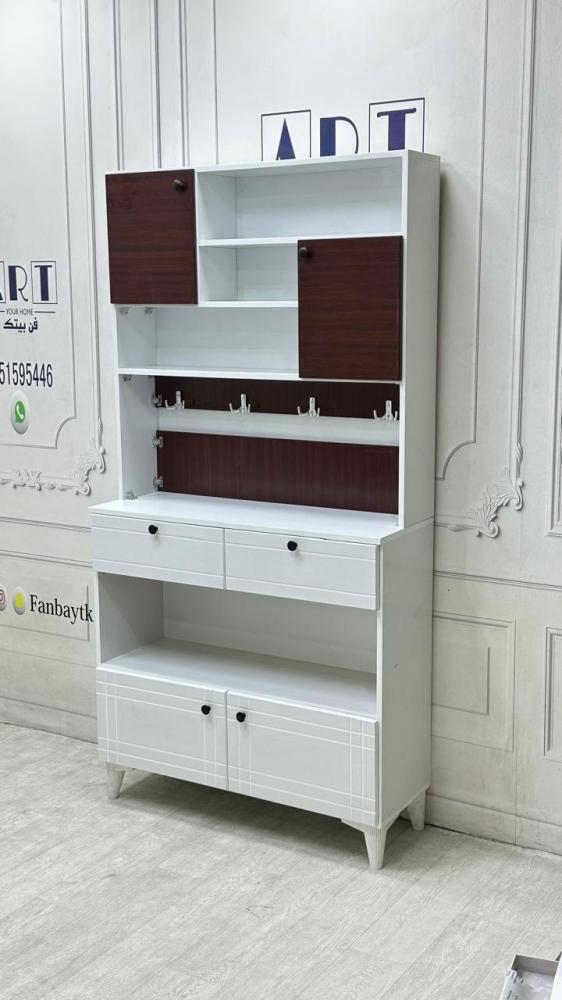 - التخزين: يحتوي على رفوف وأدراج مدمجة لتخزين الأكواب، الصحون، أو الأغراض الصغيرة.