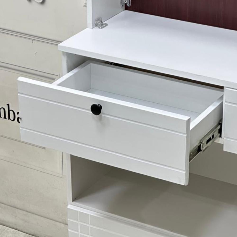 - اللون: سطح خشبي ابيض مع ادراج بنيه