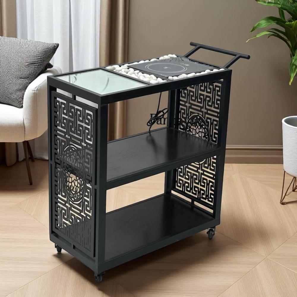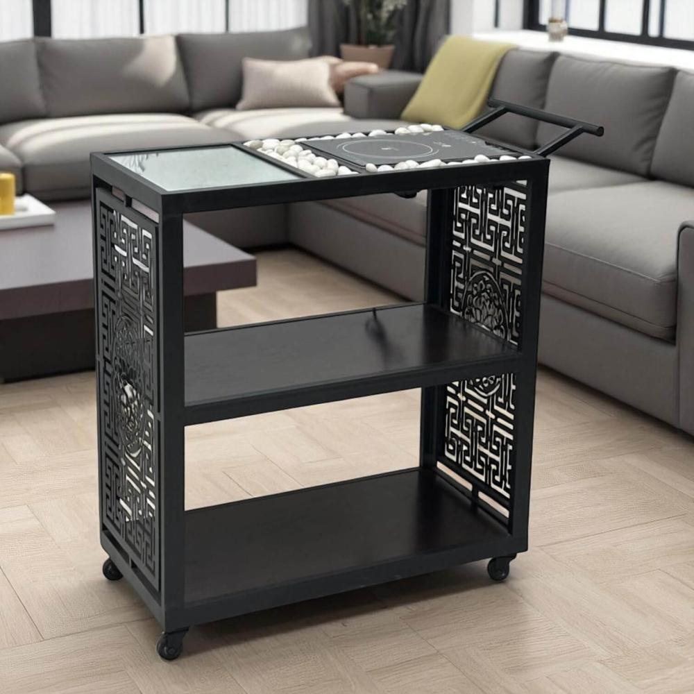 تصميم عملي لضيافة مثاليةتتميز هذه العربة بتصميمها ثلاثي الأدوار الذي يوفر مساحة واسعة للتقديم والتنظيم، مع ميزة إضافية للحفاظ على دفء الطعام: