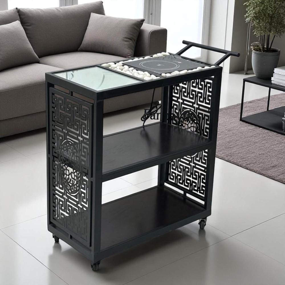 - عجلات متينة: لتعزيز سهولة الاستخدام، تأتي العربة مزودة بعجلات قوية ومتينة في قاعدتها. هذه العجلات تضمن حركة سلسة ومريحة على مختلف الأسطح، مما يتيح لك نقل العربة بسهولة بين المطبخ ومنطقة الضيافة، أو حتى داخل الغرفة لتغيير مكان التقديم.