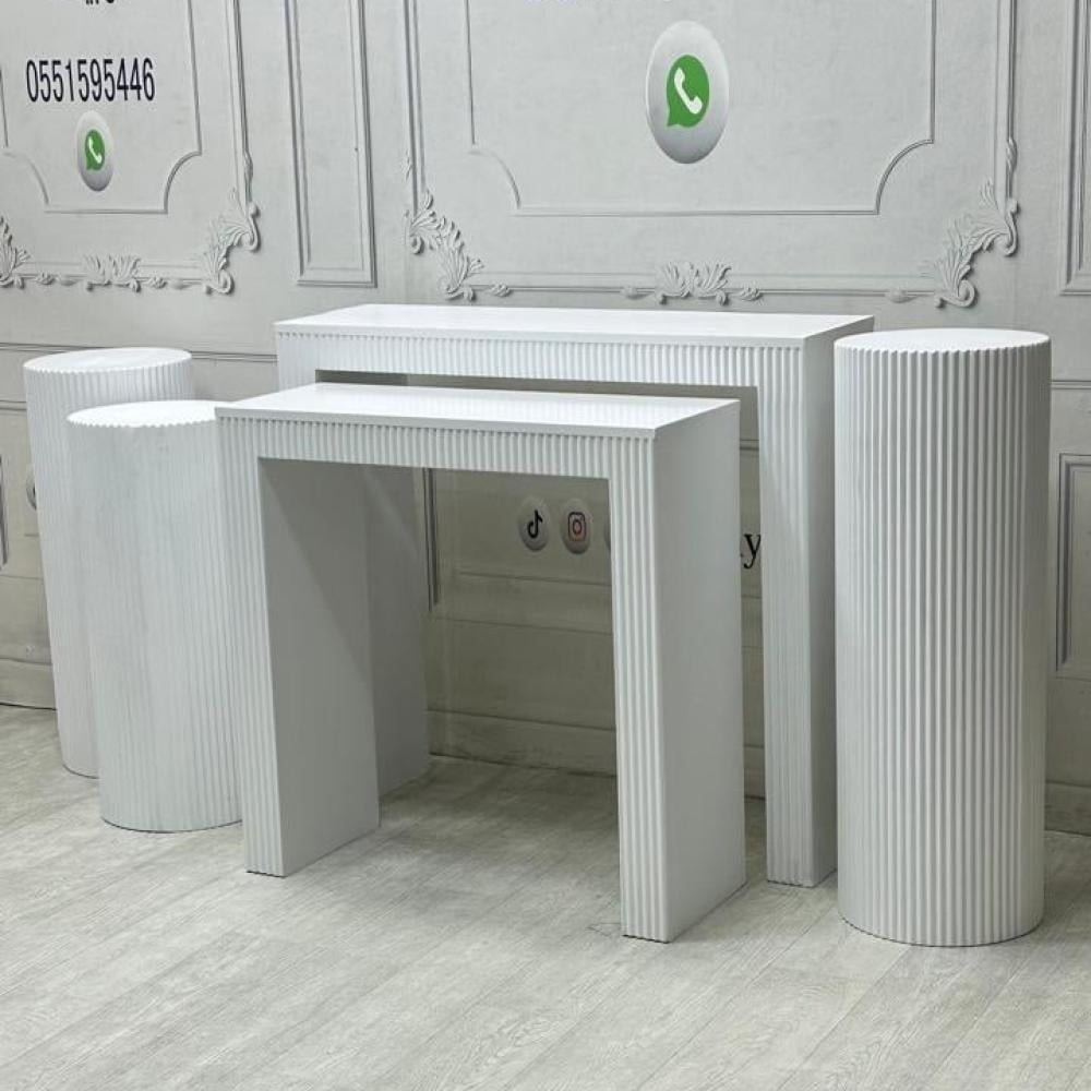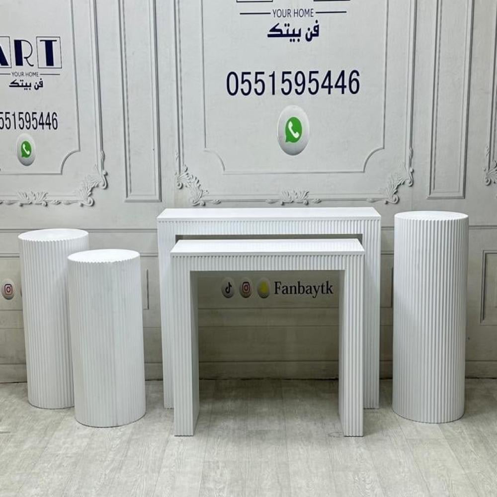 طقم طاولات واستاندات استقبال (5 قطع) بتصميم أبيض مطفي عصري وأنيق يمثل إضافة فاخرة وعملية لأي مساحة استقبال. يتميز هذا الطقم بمظهره العصري الذي يجمع بين الفخامة والبساطة، مما يجعله قطعة متعددة الاستخدامات تتناسب مع مختلف أنماط الديكور.