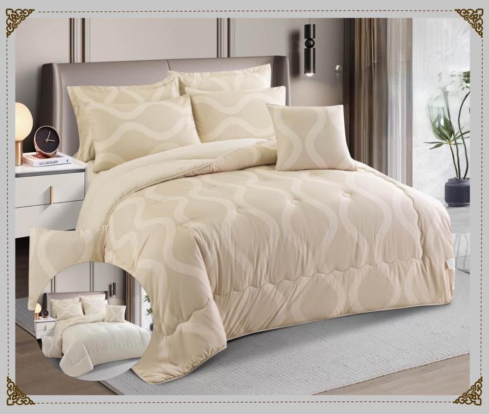 راحة مطلقة: تصميم اللحاف والشرشف يضمن لك تغطية مثالية للسرير، بينما تضيف أكياس المخدات لمسة فاخرة للوسائد.