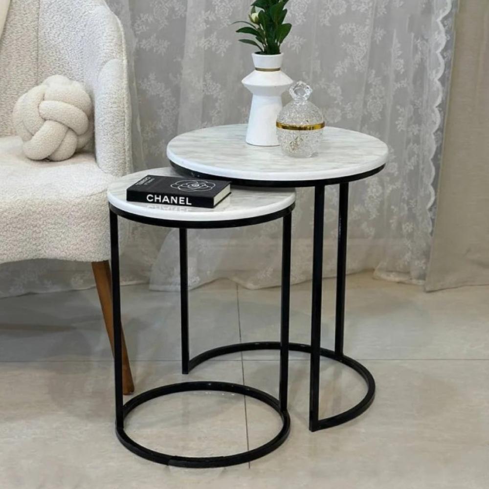 - خامة السطح: خشب بلون أبيض، يمنح الطاولتين مظهرًا مشرقًا ونظيفًا، ويتناسق بسهولة مع الألوان المختلفة في الديكور.