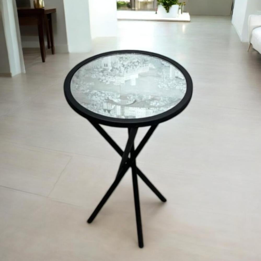 طاولة خدمة مفردة دائرية باللون الأسود: