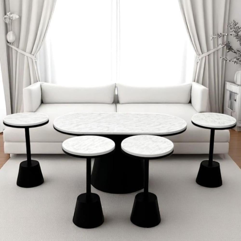 طقم طاولة كبيرة مع 4 طاولات خدمه السطح خشب شبية الرخام القاعدة حديد