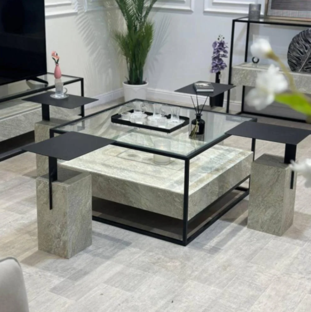 الاختيارات المميزة تليق بك، اختر طقم طاولات بديل الرخام لتقديم القهوة بتصميمه الراقي وتفاصيله الدقيقة، يضفي طابع مختلف لأي مكان ويتناسب مع مختلف المساحات والديكورات اقتني طقم طاولات مميز يصبح محط أنظار ضيوفك، يتميز هذا الطقم بمظهر رخامي رائع، بجانب كونه مصنع من خامات عالية الجودة ومقاومة للخدوش، مما يضمن لك استخدام طويل ومظهر مثالي.