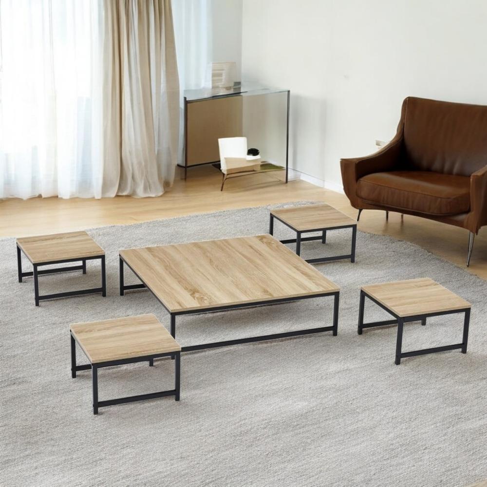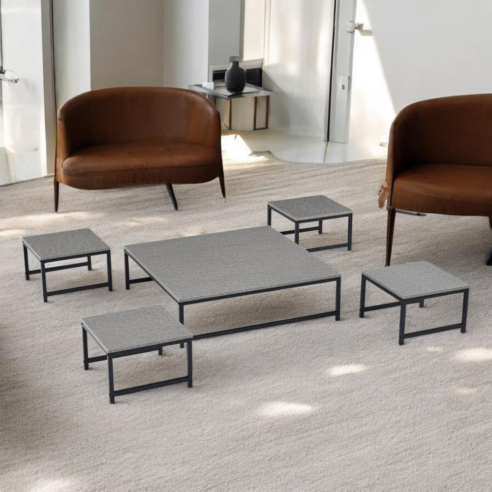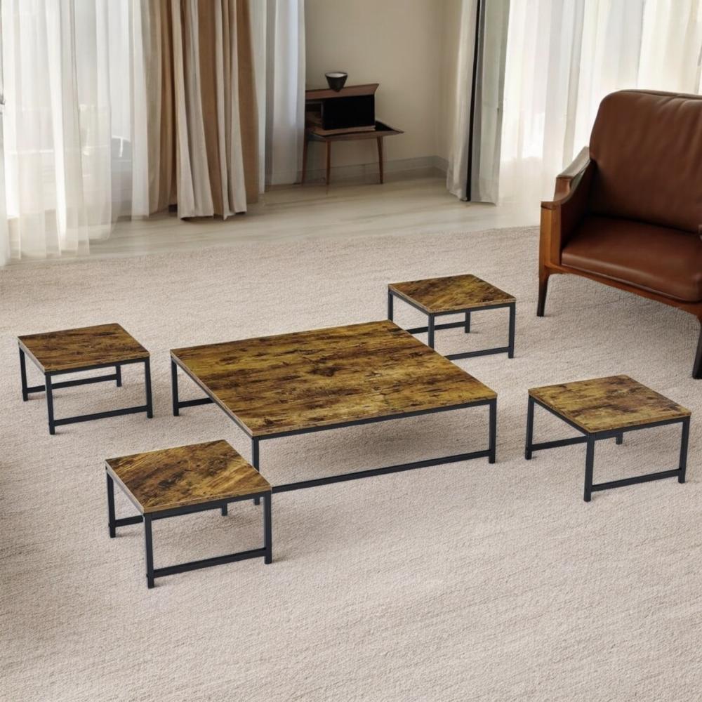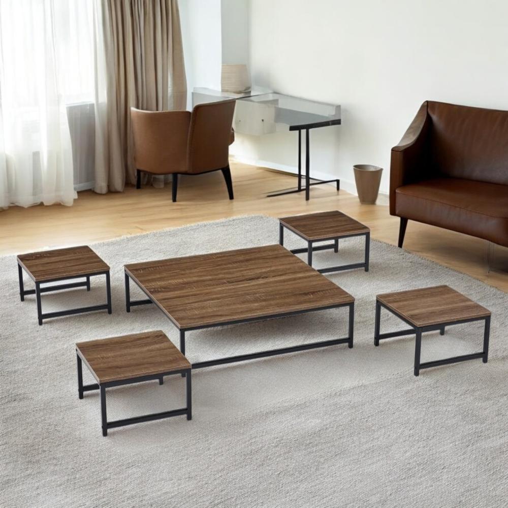 هذا الطقم الأنيق والمصمم خصيصًا لغرف المعيشة يتكون من طاولة قهوة رئيسية وأربع طاولات جانبية صغيرة، وهو مثالي لإضفاء لمسة من الأناقة والحداثة على غرفة المعيشة الخاصة بك.