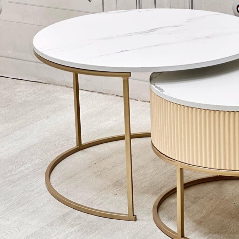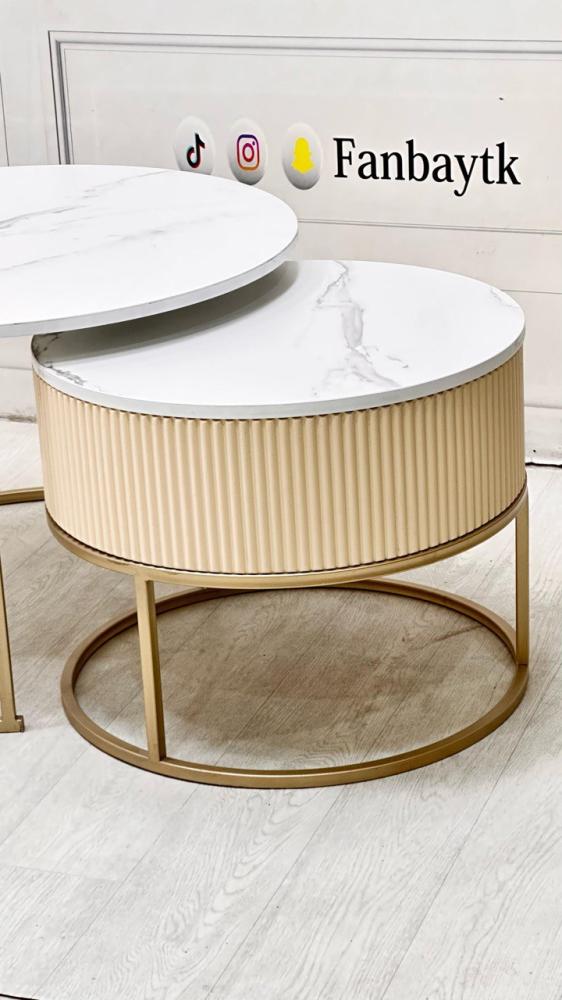 طاولة الخدمة بسطح خشب رخامي ودرج