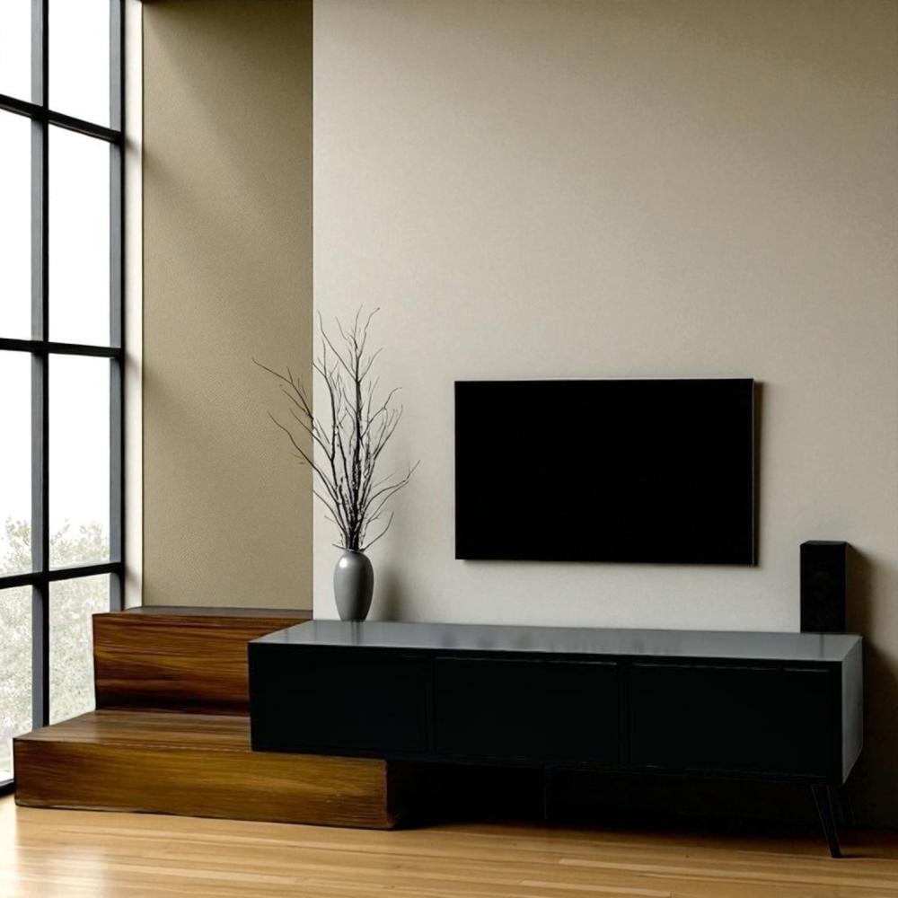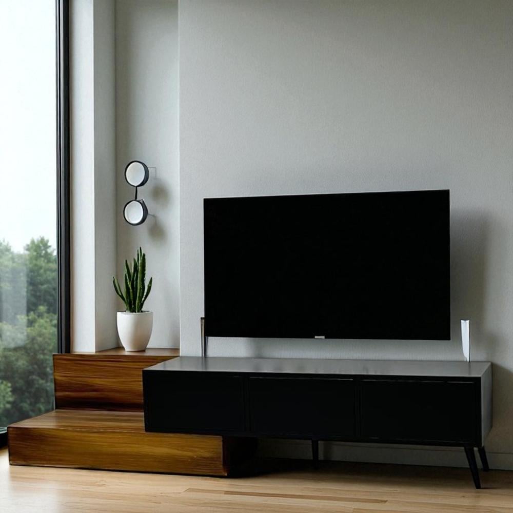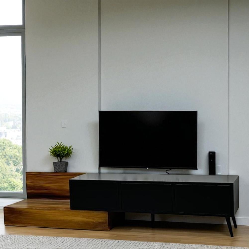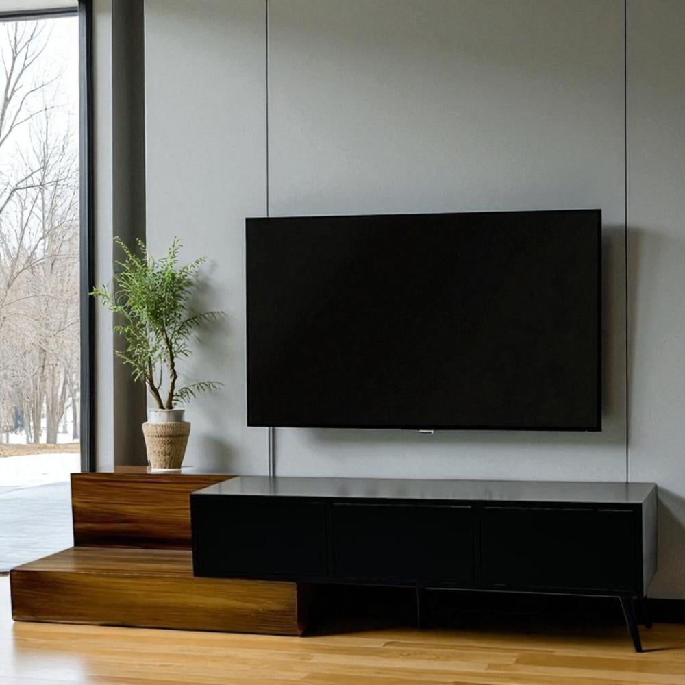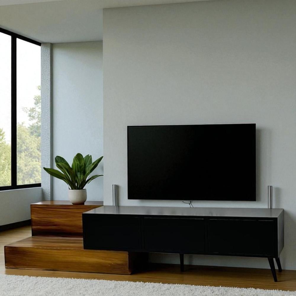 تخيل طاولة بلازما عصرية تجمع بين الأناقة والوظائف المتعددة، مصممة خصيصًا لتلائم أجهزة التلفزيون الحديثة وتضفي لمسة من الرقي على غرفة معيشتك. هذه الطاولة مصنوعة من مزيج فاخر من الخشب الأسود والبني، مما يخلق تباينًا لونيًا جذابًا يبرز جمال التصميم الحديث.