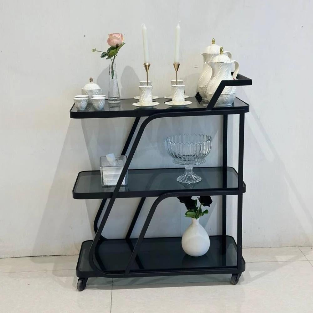 عربة ضيافة تتميز بتصميم على شكل سفينة يضفي لمسة فنية وجمالية.