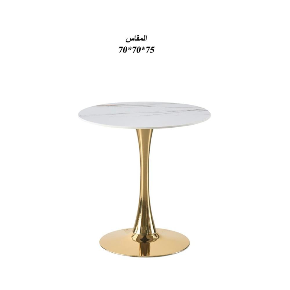 - القاعدة: على شكل قاعدة عريضة ذهبية اللون تدعم السطح بشكل أنيق.