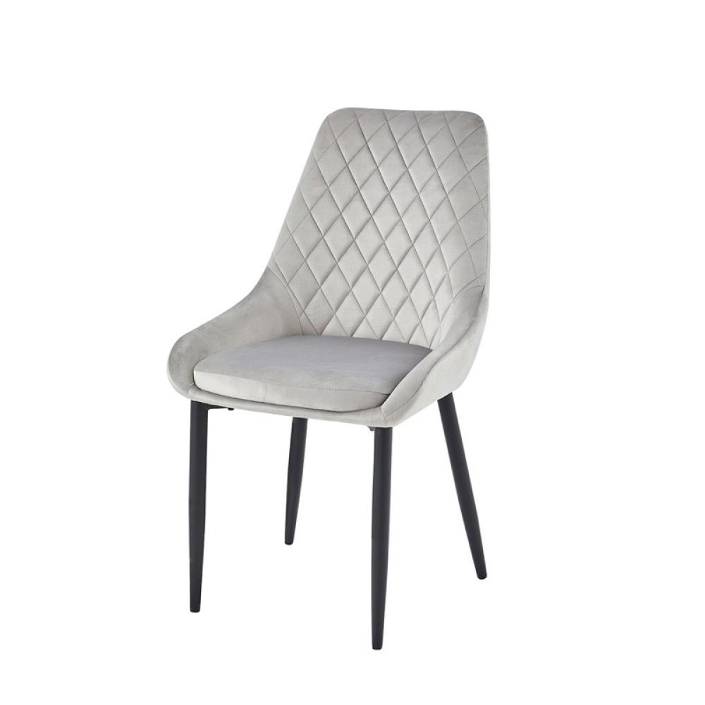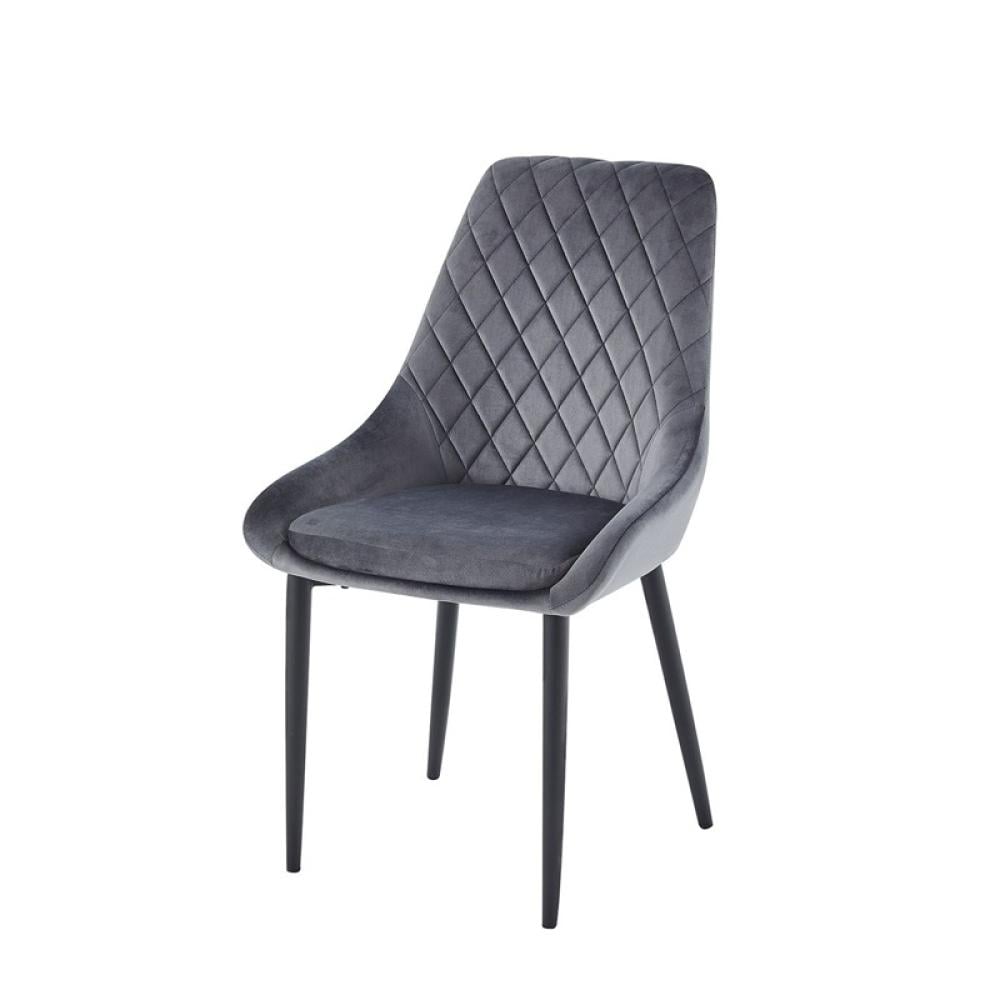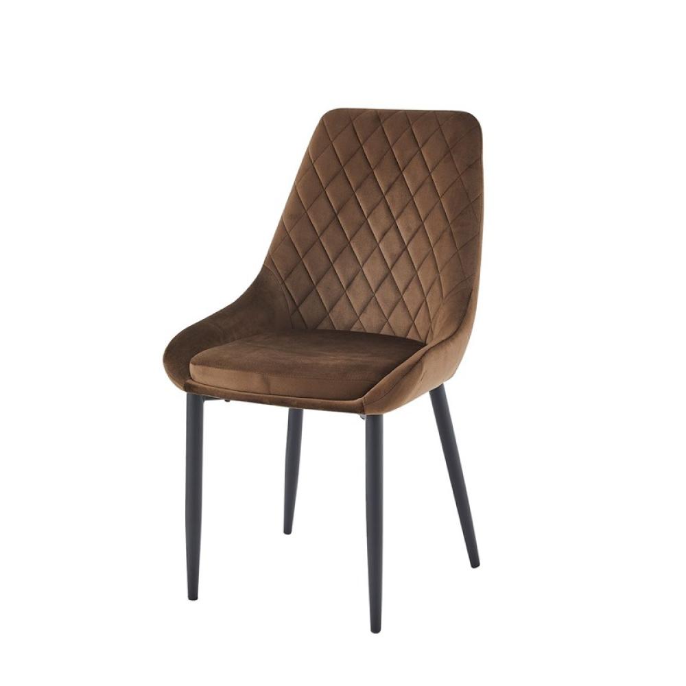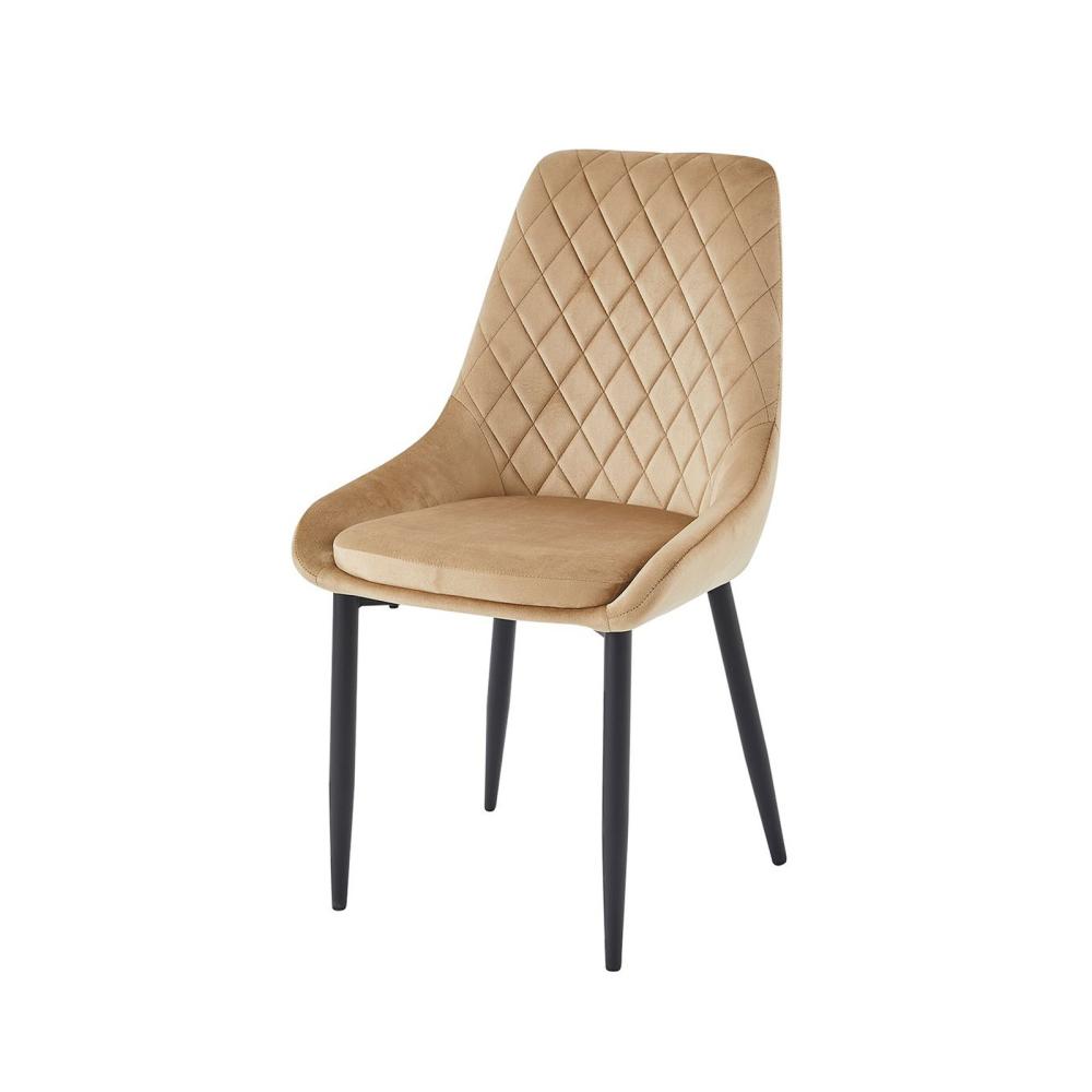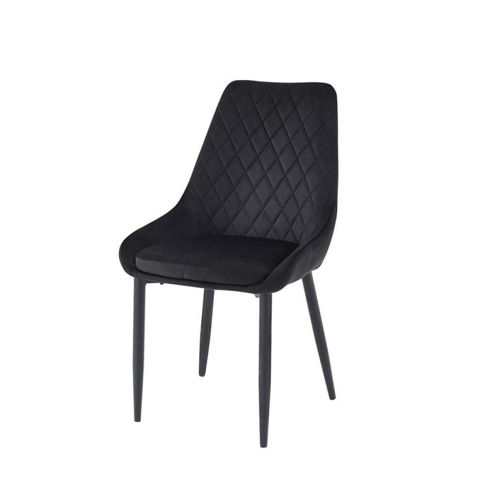 - المادة:الكرسي مصنوع من قماش مخملي ناعم ومريح، مع إطار معدني أسود يضفي عليه مظهرًا عصريًا.