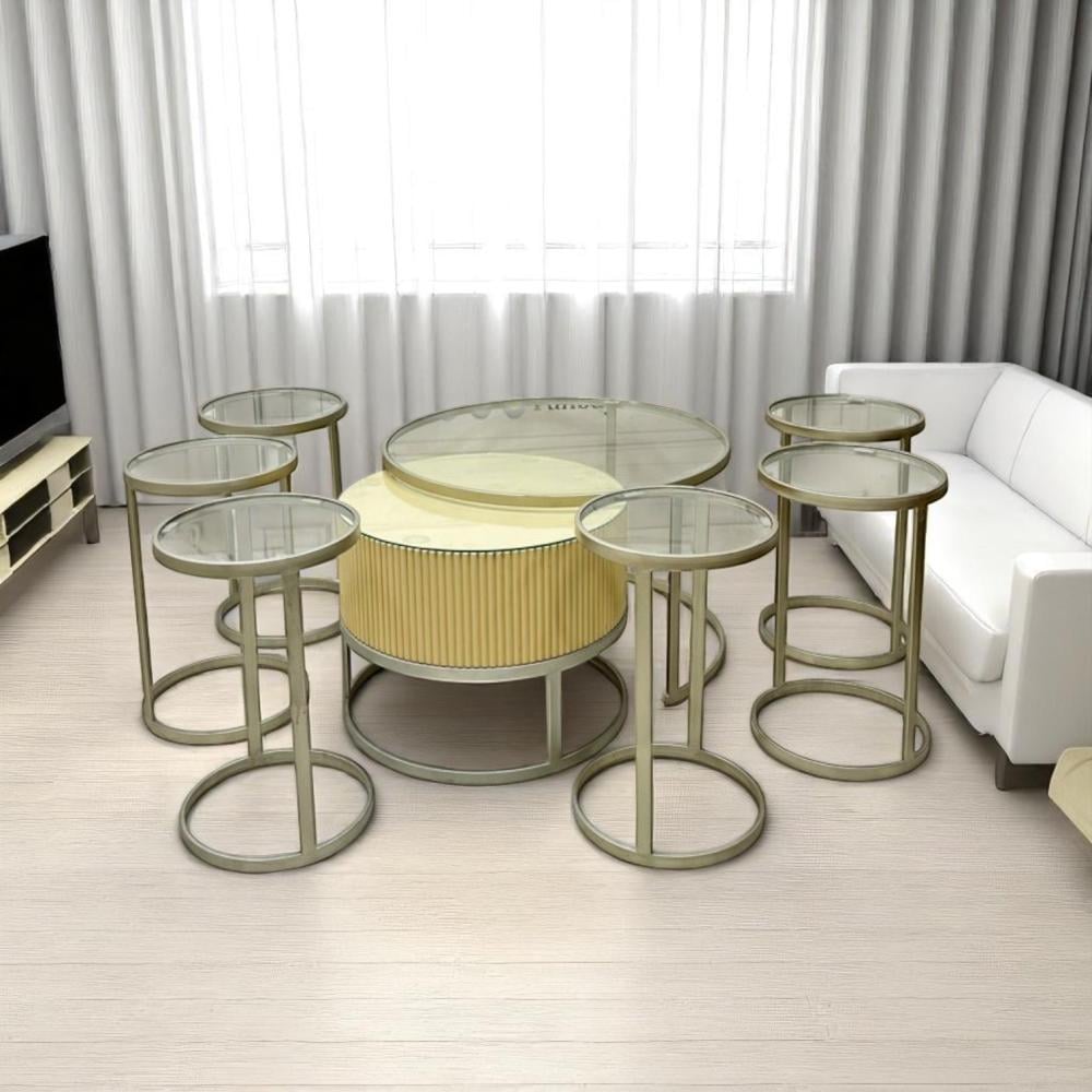 أضف لمسة من الأناقة والعملية إلى منزلك مع طقم الطاولتين المتداخلتين مع 4 خدمة، الذي يجمع بين التصميم العصري والوظائف المتعددة لتوفير تجربة فاخرة ومريحة لأي مساحة.
