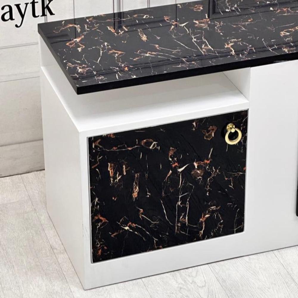 المواد: مصنوعة الطاولة بشكل أساسي من الخشب، مع استخدام مادة بديلة للرخام لتزيين السطح والأبواب. هذا المزيج يمنح الطاولة مظهرًا فاخرًا وعصريًا.
