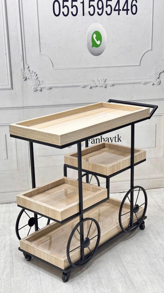 عربة تقديم: مثالية لتقديم الشاي، القهوة، الوجبات الخفيفة، أو المشروبات للضيوف.