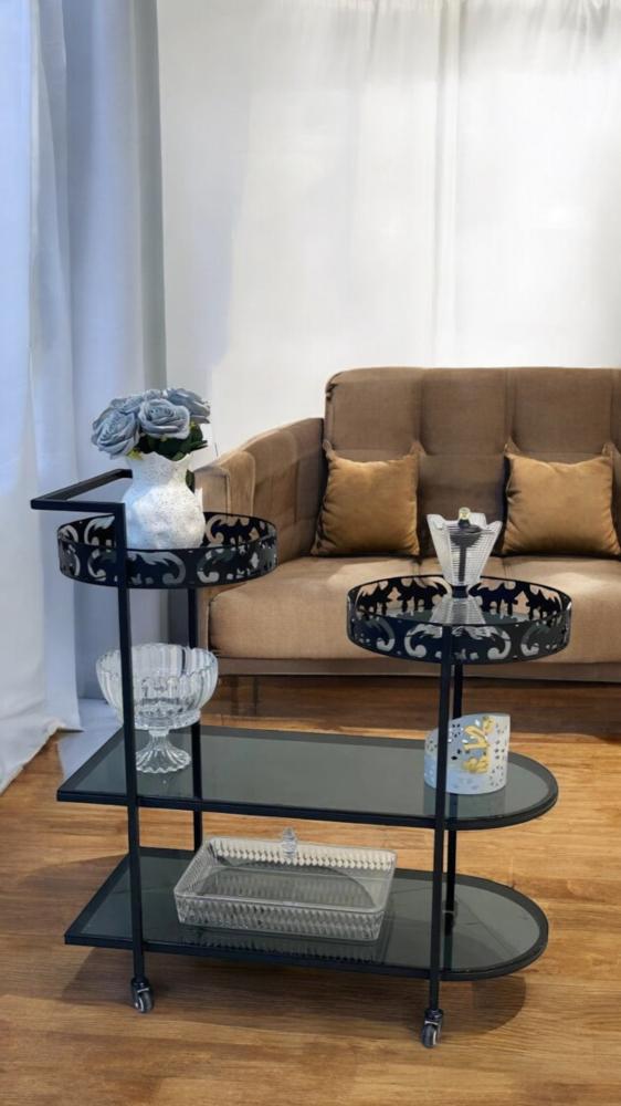 - عربة تقديم مميزة: نقطة محورية لتقديم المشروبات، الحلويات، أو المقبلات في المناسبات بأسلوب عصري ومبتكر، مع الاستفادة من الأسطح الدائرية لفصل الأصناف.