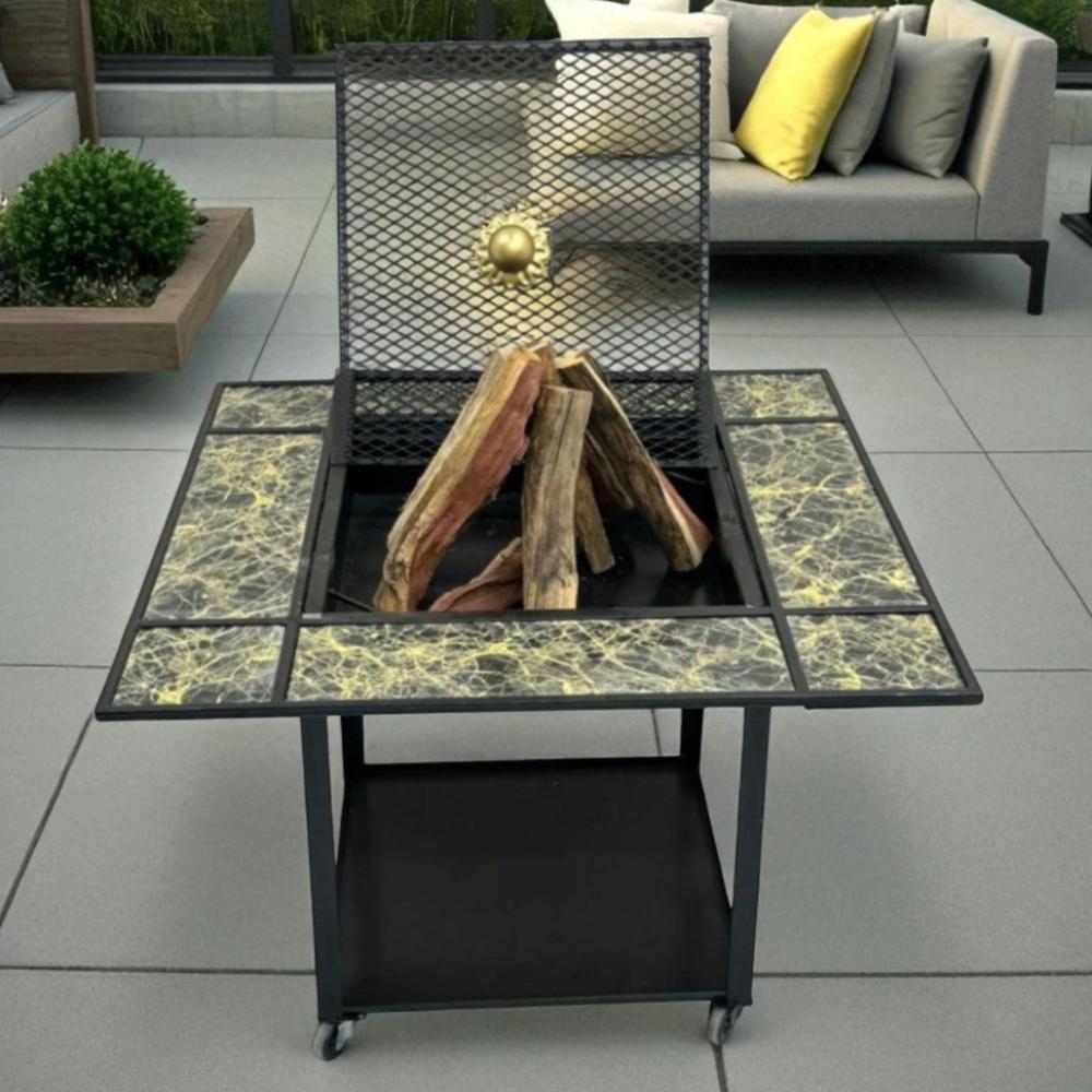 تصميمه عصري وفاخر يضيف لمسة ديكور مميزة لأي مكان داخلي أو خارجي. صُنع بعناية ليكون عملي وسهل الاستخدام، مع هيكل قوي يضمن ثباته واستقراره أثناء وضع الحطب وتشغيل النار.