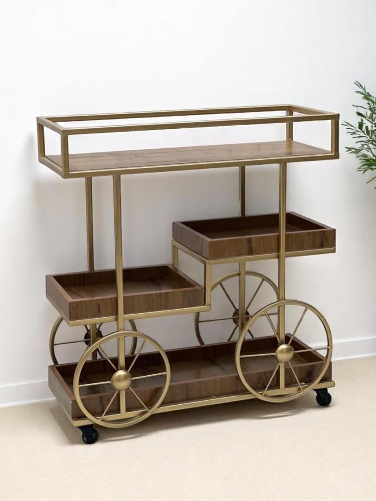 ارفع مستوى الضيافة والفخامة في مساحتك مع عربة التقديم الخشبية هذه، المصممة لتجمع بين دفء الخشب وأناقة الذهب. تُعد هذه العربة قطعة أثاث استثنائية وعملية، مثالية للمنازل الراقية أو قاعات الضيافة في الرياض تصميم فاخر بلمسة ذهبيه .