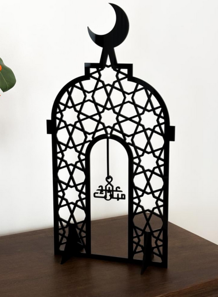 مقاس الستاند ٢٦×٥٠ سنتيمتر، مقاس عبارة عيد مبارك ٦.٥×٥.١ سنتيمتر. مصنوع من أكريليك أسود ويتميز بتصميم منقوش بأعلى جودة بالليزر مستوحى من روح العيد. تصميمه الأنيق يجعله مثاليًا لتزيين الرفوف أو الطاولات في المنزل أو المكتب، كما أنه هدية رائعة للأهل والأصدقاء. الأكريليك مزود بملصق حماية يجب إزالته قبل الاستخدام.