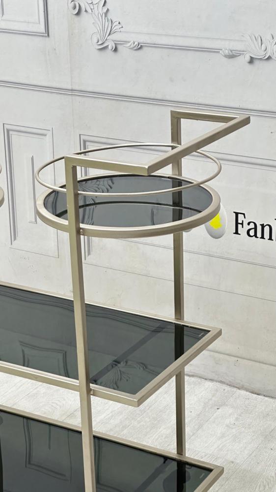 تُعدّ هذه العربة قطعة أثاث فريدة من نوعها، مصممة لإبهار ضيوفك وإضفاء طابع احترافي ومبتكر على ديكورك. تتميز بتصميمها العملي المكون من أربعة أدوار، والتي توفر مساحة تخزين وعرض وفيرة، مما يجعلها مثالية لتقديم الضيافة، عرض الديكورات المميزة، أو حتى تنظيم المستلزمات بأسلوب أنيق.