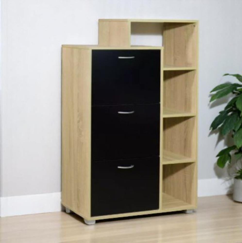 خزانة تنظيم الأحذية من الخشب 3 أدوار مع أرفف جانبية لون خشبي و أسود :